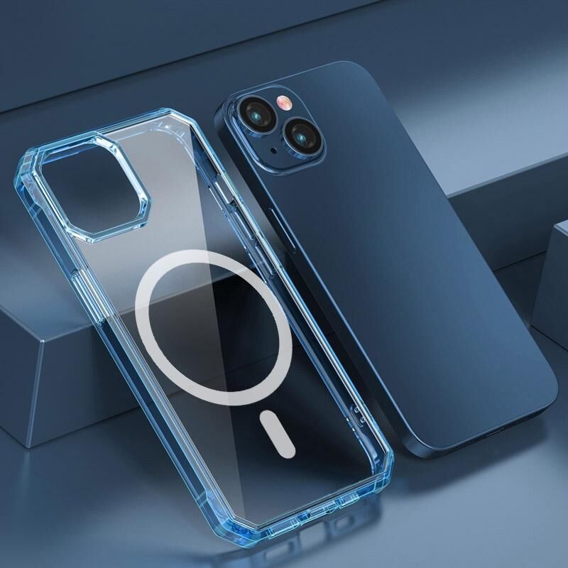 For iPhone 13 TPU Four-corner Airbag Shockproof Magsafe Phone Case(Blue)