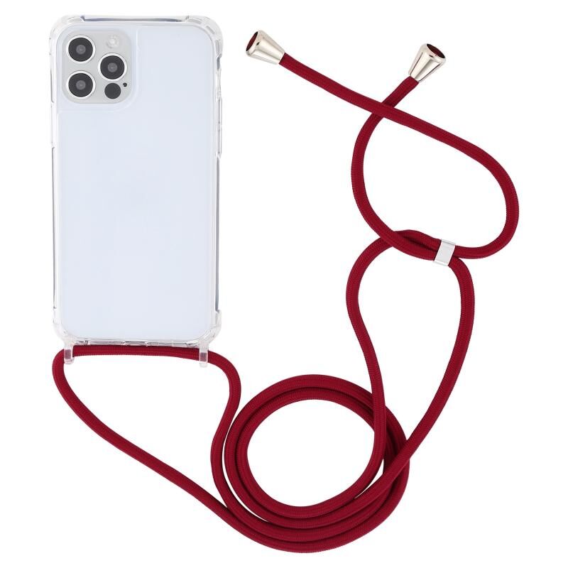 Θήκη προστασίας κινητού τηλεφώνου για iPhone 13, διαφανής ακρυλική, αντικραδασμική με αερόσακο και κορδόνι (Βυσσινί)