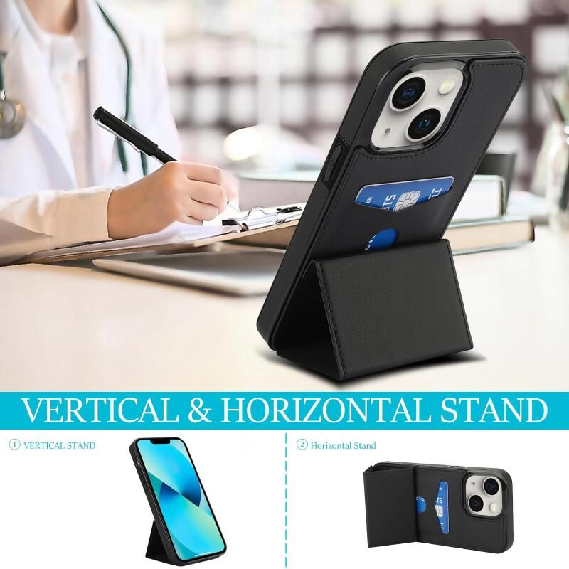 For iPhone 13 Tri-fold Holder Leather Phone Case with Card Slot(Black)