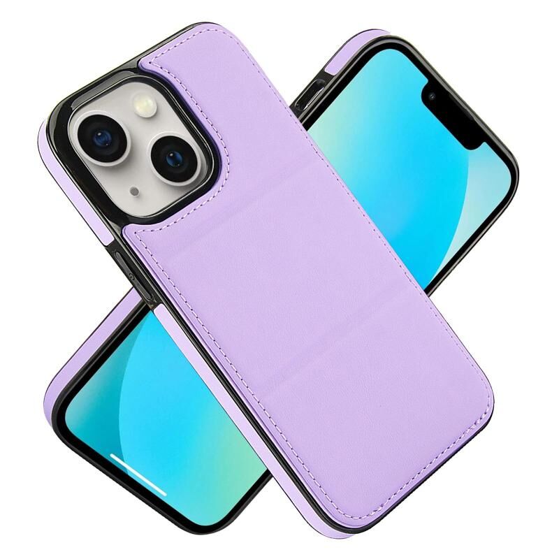 For iPhone 13 Tri-fold Holder Leather Phone Case with Card Slot(Light Purple)