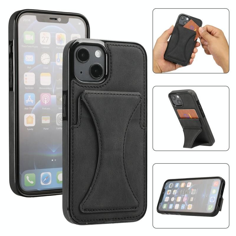 For iPhone 13 Ultra-thin Shockproof Protective Case with Holder & Metal Magnetic Function(Black)
