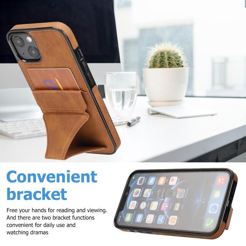 For iPhone 13 Ultra-thin Shockproof Protective Case with Holder & Metal Magnetic Function(Brown)