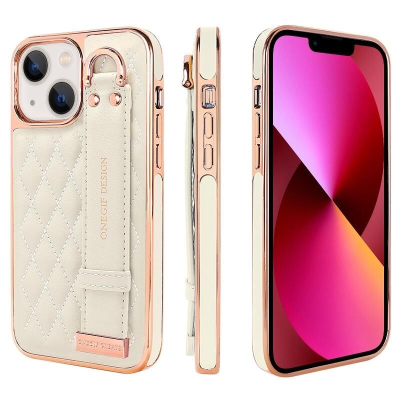 For iPhone 13 VIETAO Rhombic Texture Wristband PU Phone Case(White) (VIETAO)