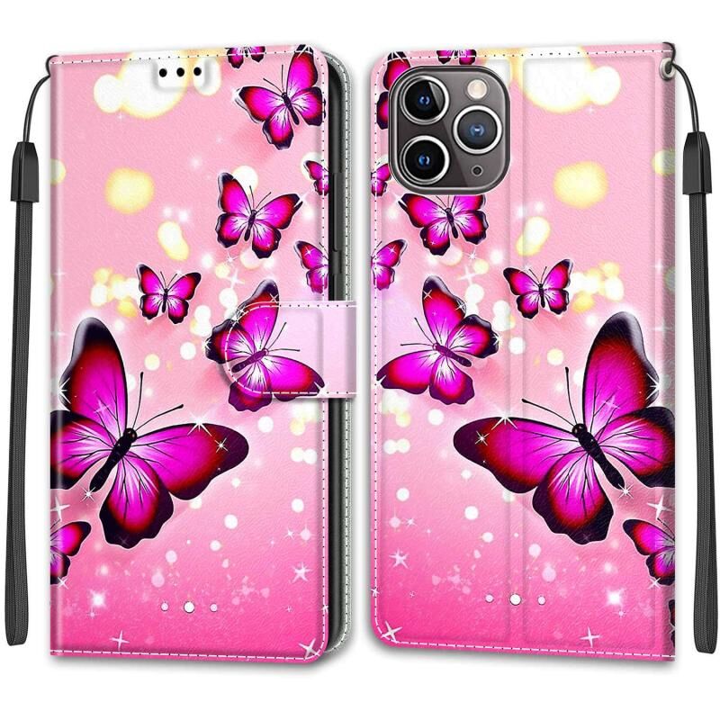 For iPhone 13 Voltage Colored Drawing Magnetic Clasp Horizontal Flip PU Leather Case with Holder & Card Slots(C03 Gradient Pink Flying Butterflies)