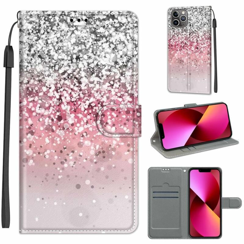 For iPhone 13 Voltage Colored Drawing Magnetic Clasp Horizontal Flip PU Leather Case with Holder & Card Slots(C13 Silver Pink Glitter)