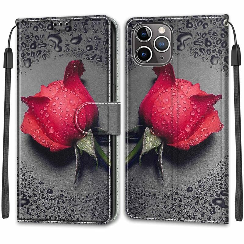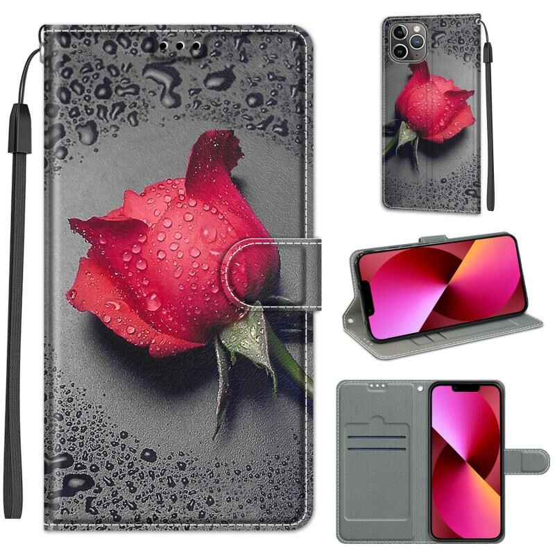 For iPhone 13 Voltage Colored Drawing Magnetic Clasp Horizontal Flip PU Leather Case with Holder & Card Slots(C14 Black Water Drop Rose)