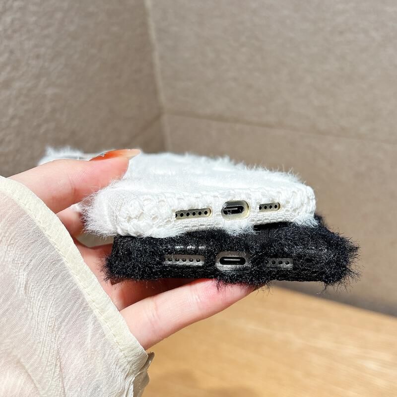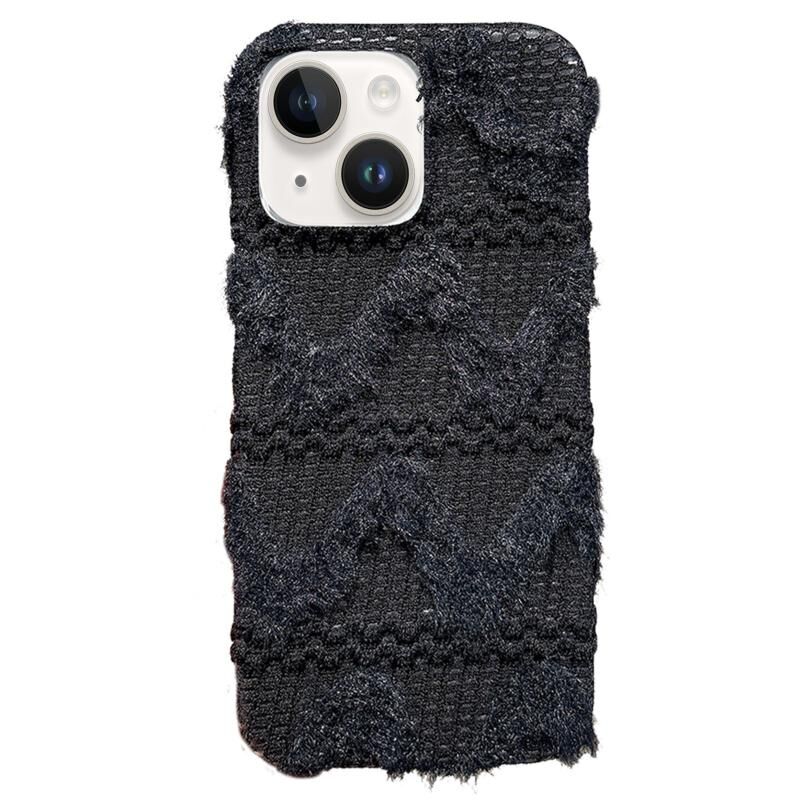 For iPhone 13 W-texture Plush TPU Phone Case(Black)