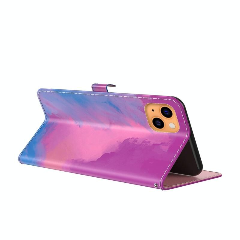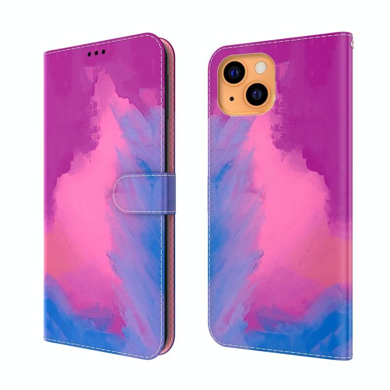 For iPhone 13 Watercolor Pattern Horizontal Flip Leather Case with Holder & Card Slot & Wallet(Purple Red)