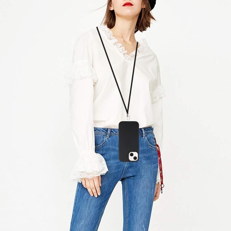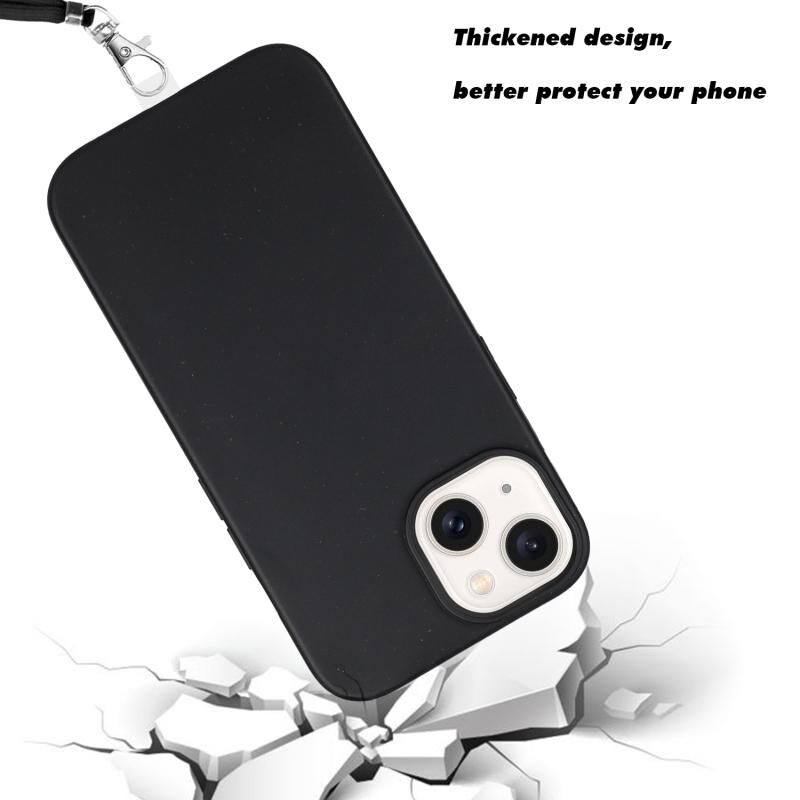For iPhone 13 Wheat MagSafe Magnetic Straw Material + TPU Phone Case with Lanyard(Black)