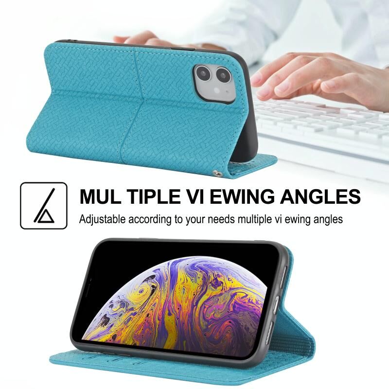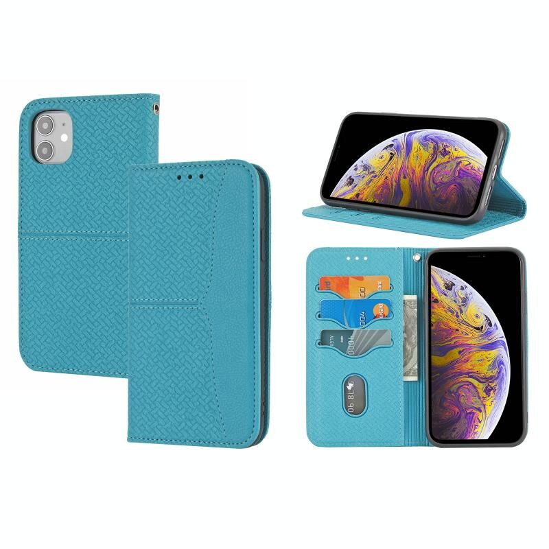 For iPhone 13 Woven Texture Stitching Magnetic Horizontal Flip PU Leather Case with Holder & Card Slots & Wallet & Lanyard(Blue)