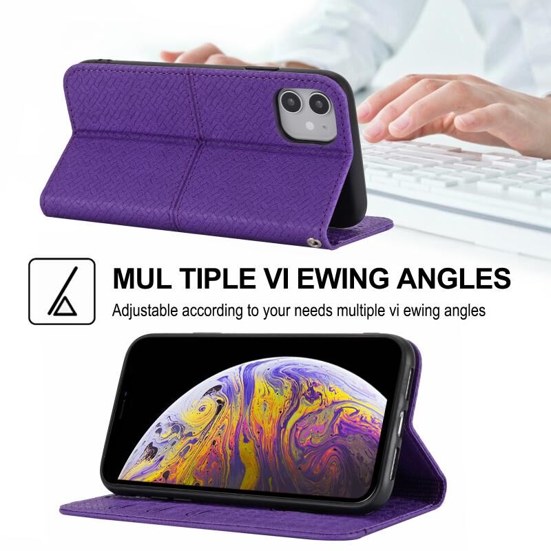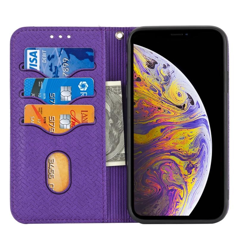 For iPhone 13 Woven Texture Stitching Magnetic Horizontal Flip PU Leather Case with Holder & Card Slots & Wallet & Lanyard(Purple)