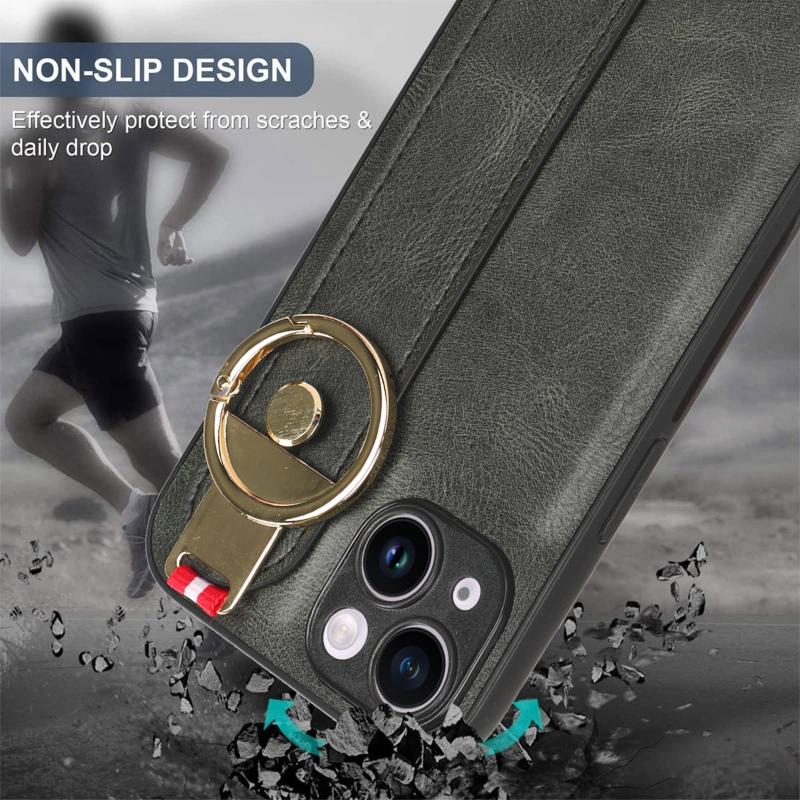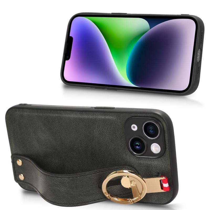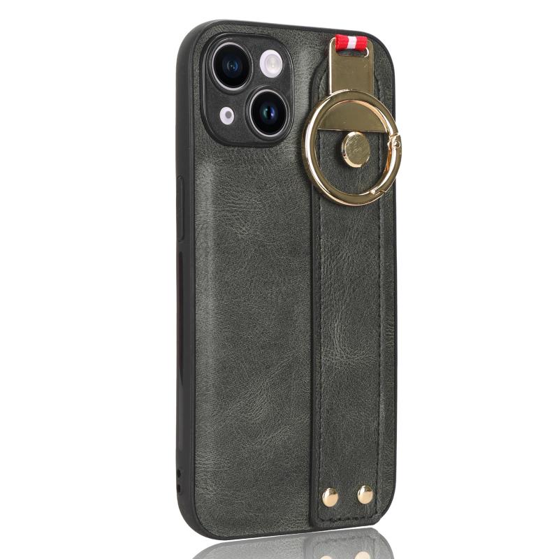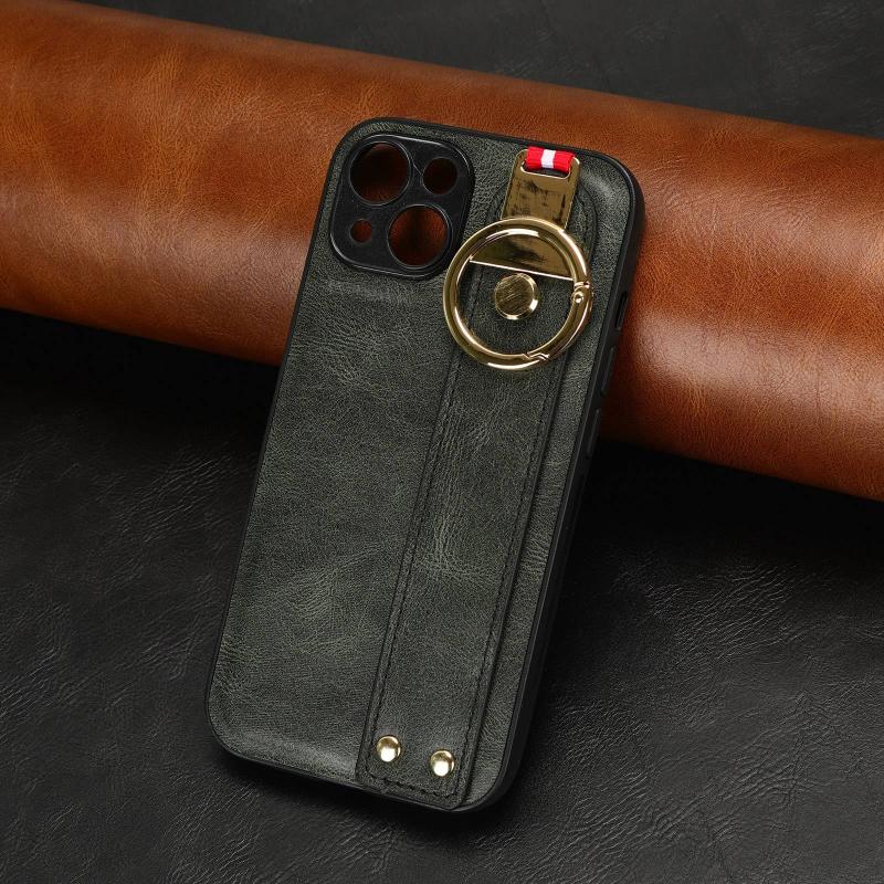 For iPhone 13 Wristband Leather Back Phone Case(Green)