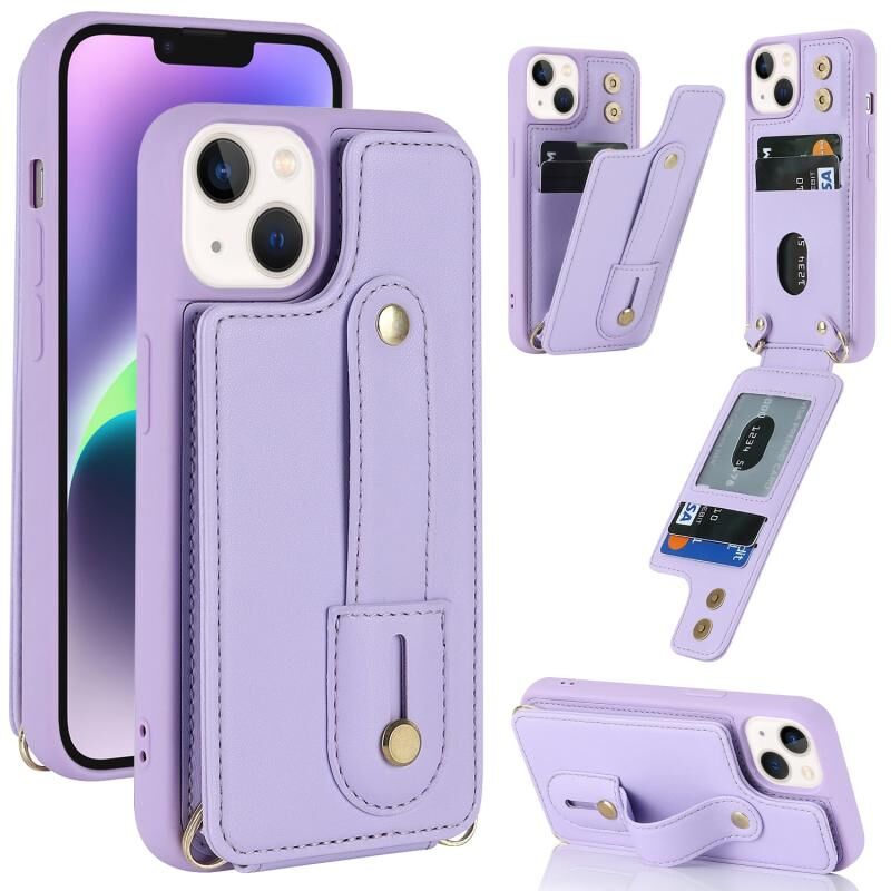 For iPhone 13 Wristband Vertical Flip Wallet Back Cover Phone Case(Purple)