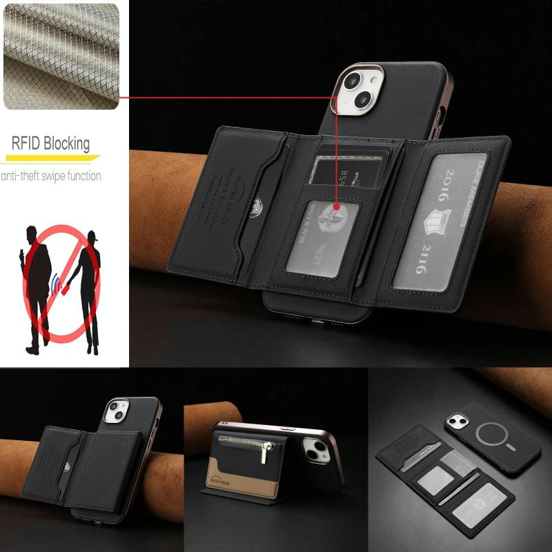 2. Magnetic Tri-Fold Wallet Design: Features a horizontal fold with a strong magnetic closure for easy access and secure storage.