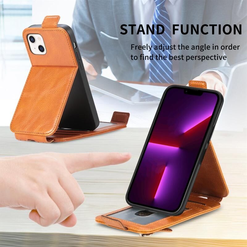 Θήκη τηλεφώνου για iPhone 13, δερμάτινη, κάθετη, με φερμουάρ και πτερύγιο (Μαύρο)