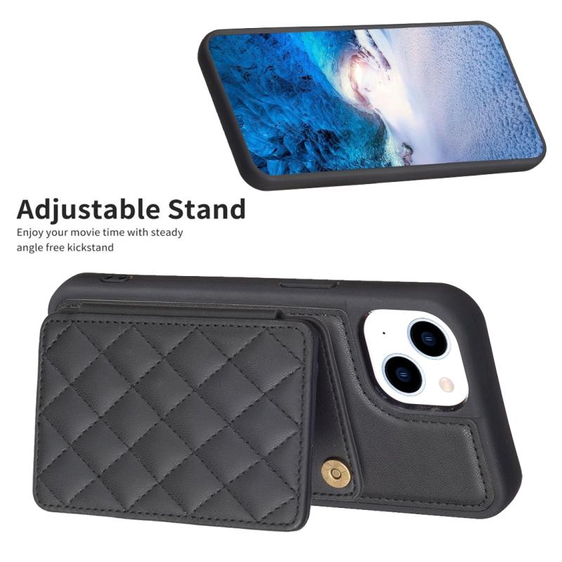 For iPhone 14 / 13 BF25 Square Plaid Card Bag Holder Phone Case(Black)