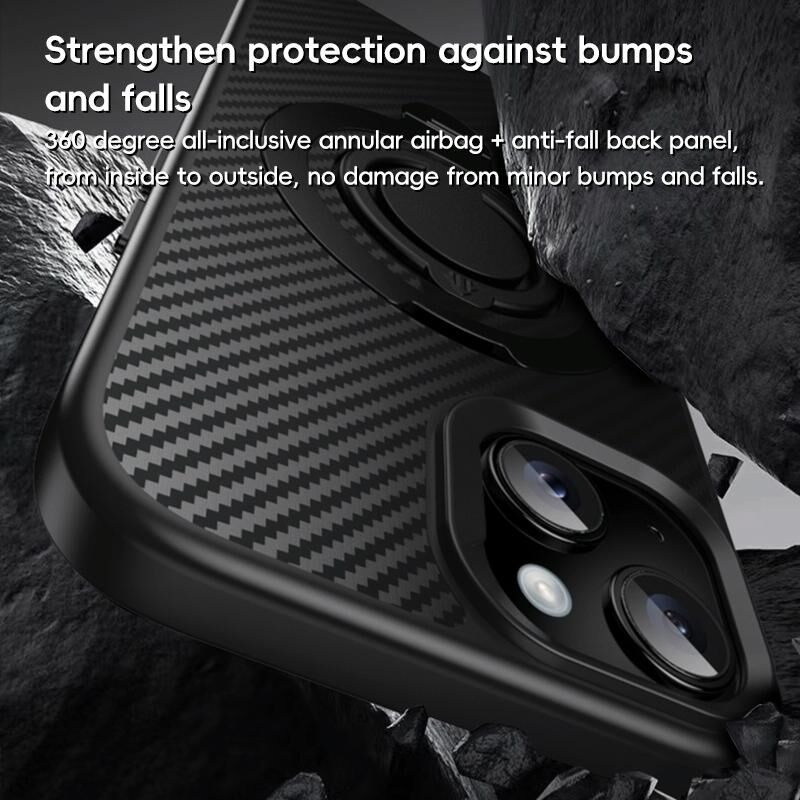 Θήκη τηλεφώνου MagSafe από ανθρακονήματα για iPhone 14 / 13 με περιστρεφόμενη βάση 360 μοιρών (Μαύρο Γκρι)