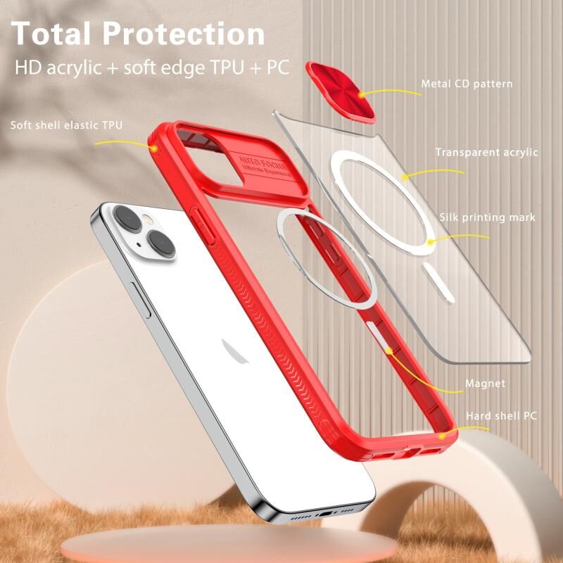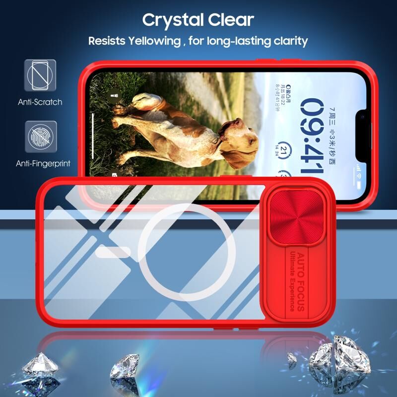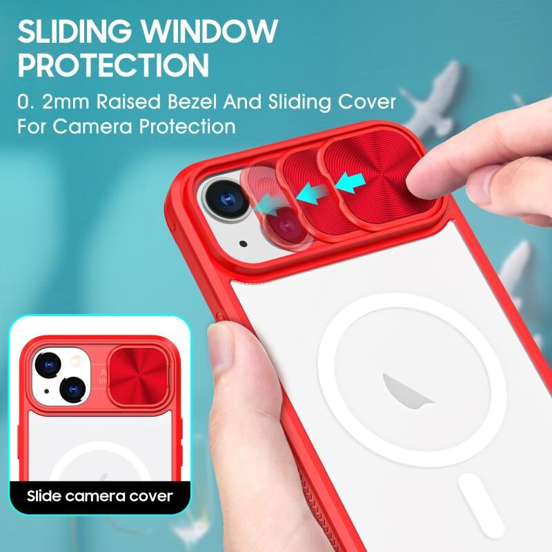 Θήκη κινητού τηλεφώνου πλήρους κάλυψης με συρόμενο κάλυμμα φακού MagSafe για iPhone 14 / 13 (Διαφανές Ακρυλικό + PC + TPU) (Ναυτικό Μπλε)