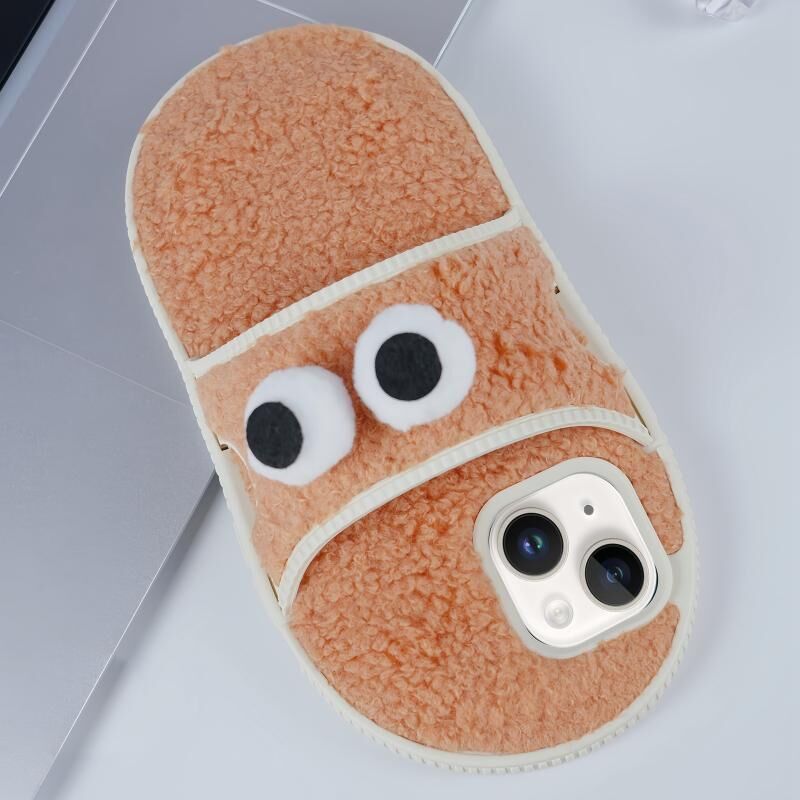 Θήκη τηλεφώνου TPU για iPhone 14 / 13 με δημιουργικό βελούδινο σχέδιο, μεγάλα μάτια και σχήμα παντόφλας (Κόκκινο)