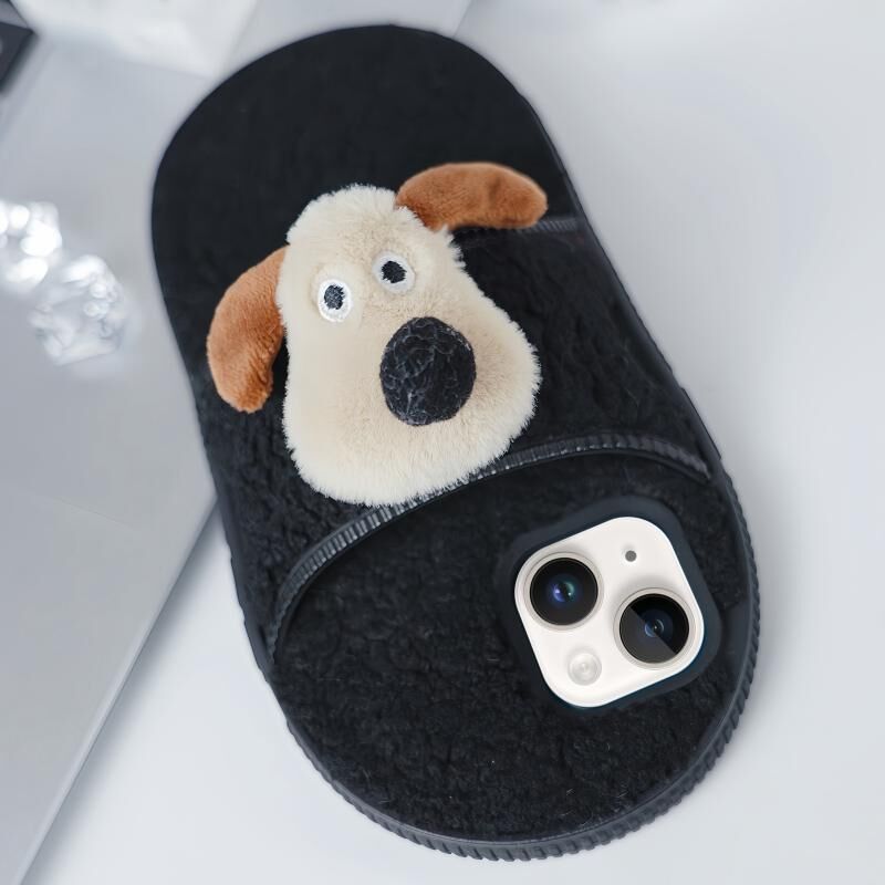 Θήκη τηλεφώνου TPU για iPhone 14 / 13 με σχέδιο παντόφλας από βελούδο (Αρχηγός Σκύλος)