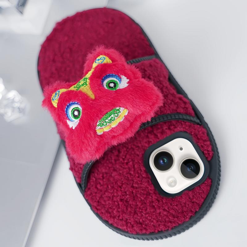 For iPhone 14 / 13 Creative Plush Doll Slipper Design TPU Phone Case(Red Dragon)