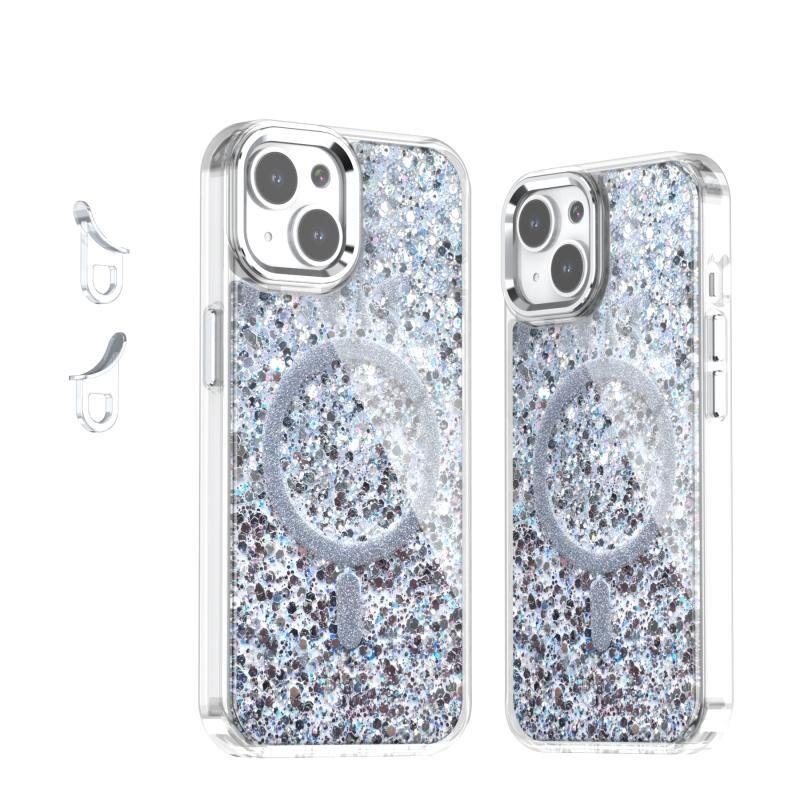 Θήκη κινητού τηλεφώνου για iPhone 14 / 13, από εποξειδική ρητίνη με γκλίτερ, μαγνητική TPU συμβατή με MagSafe (Μαύρο)
