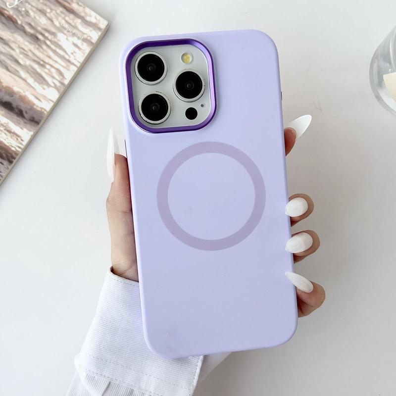 Θήκη Υγρής Σιλικόνης με Μεταλλικό Πλαίσιο & MagSafe για iPhone 14/13 (Λιλά)