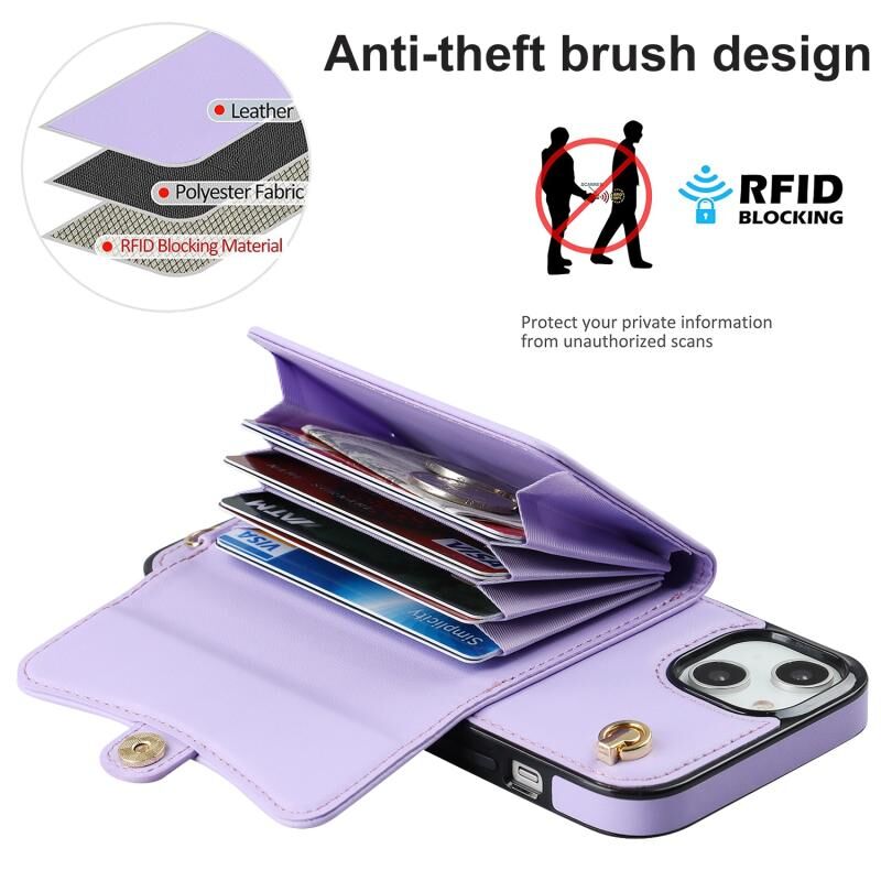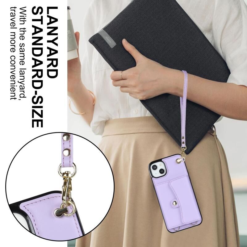 Θήκη κινητού τηλεφώνου με υποδοχή κάρτας RFID για iPhone 14 / 13 με μακρύ κορδόνι (Μαύρο)