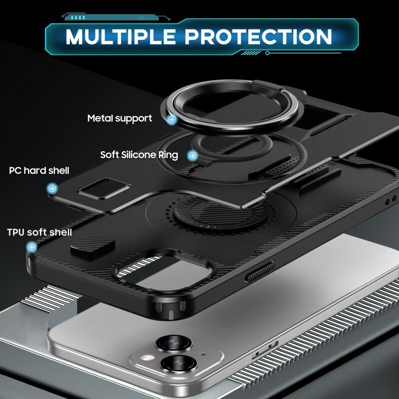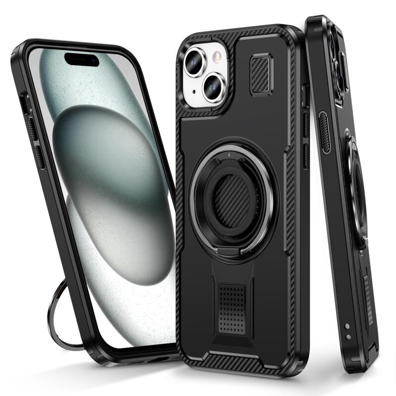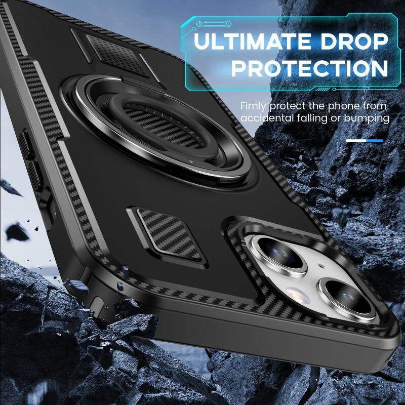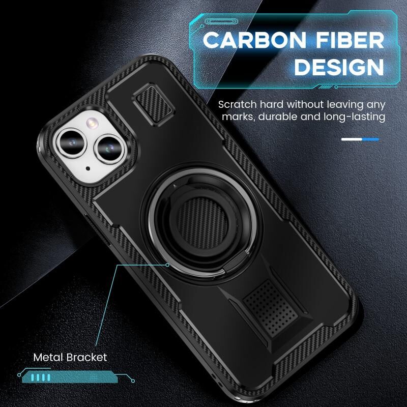 Θήκη τηλεφώνου για iPhone 14 / 13 με δακτύλιο, υβριδική από ανθρακονήματα PC και TPU (Μαύρο)