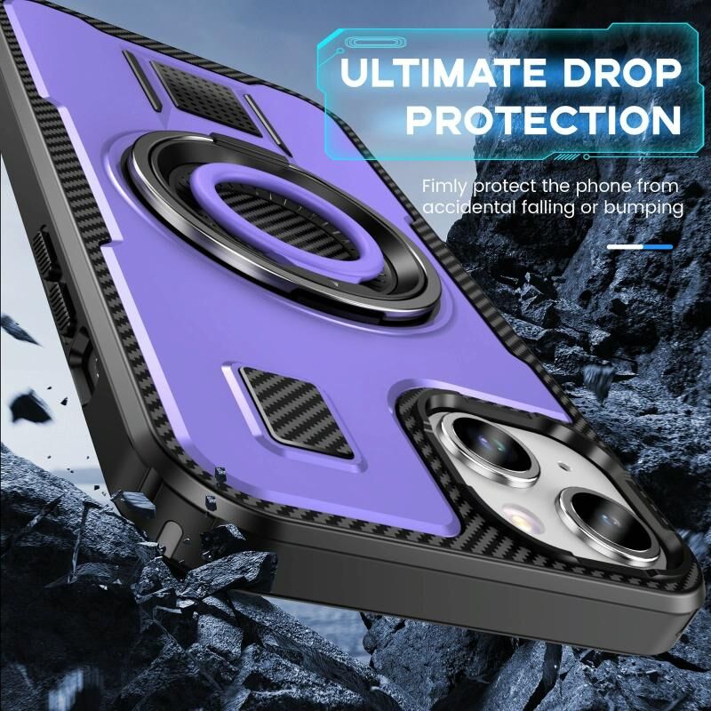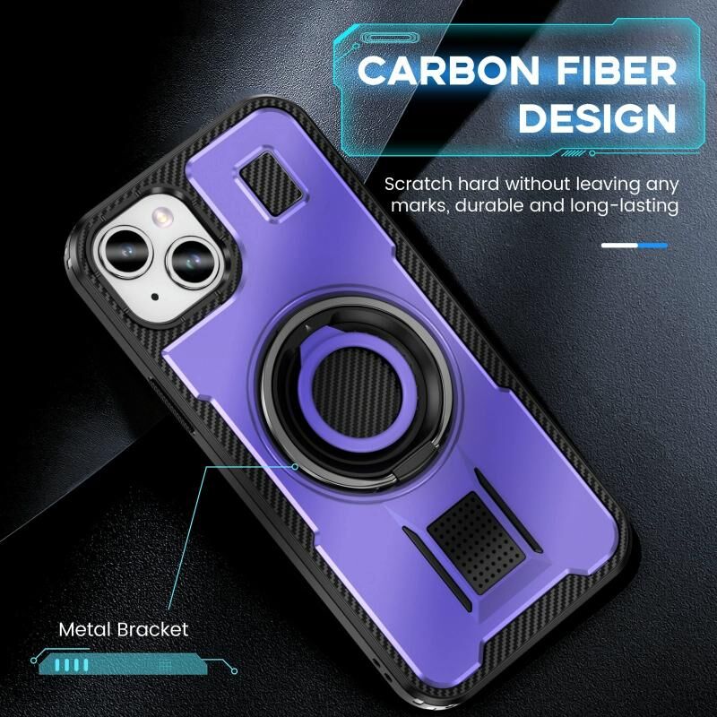 Θήκη τηλεφώνου για iPhone 14 / 13 με δακτύλιο, υβριδική από ανθρακονήματα PC και TPU (Μαύρο)