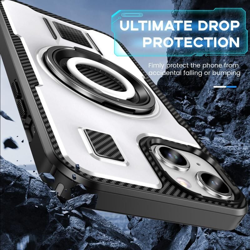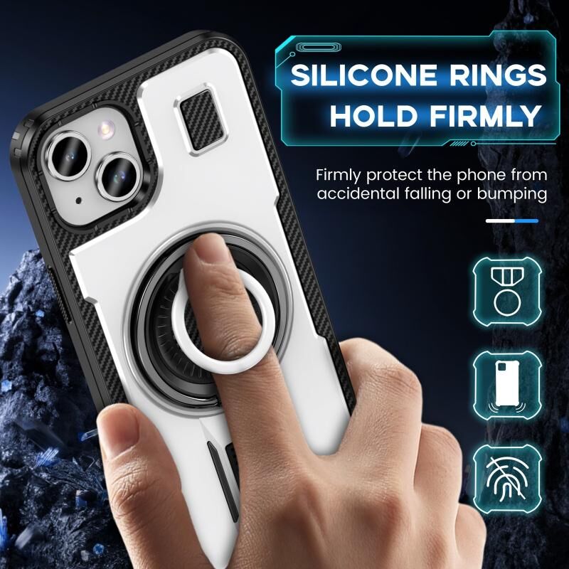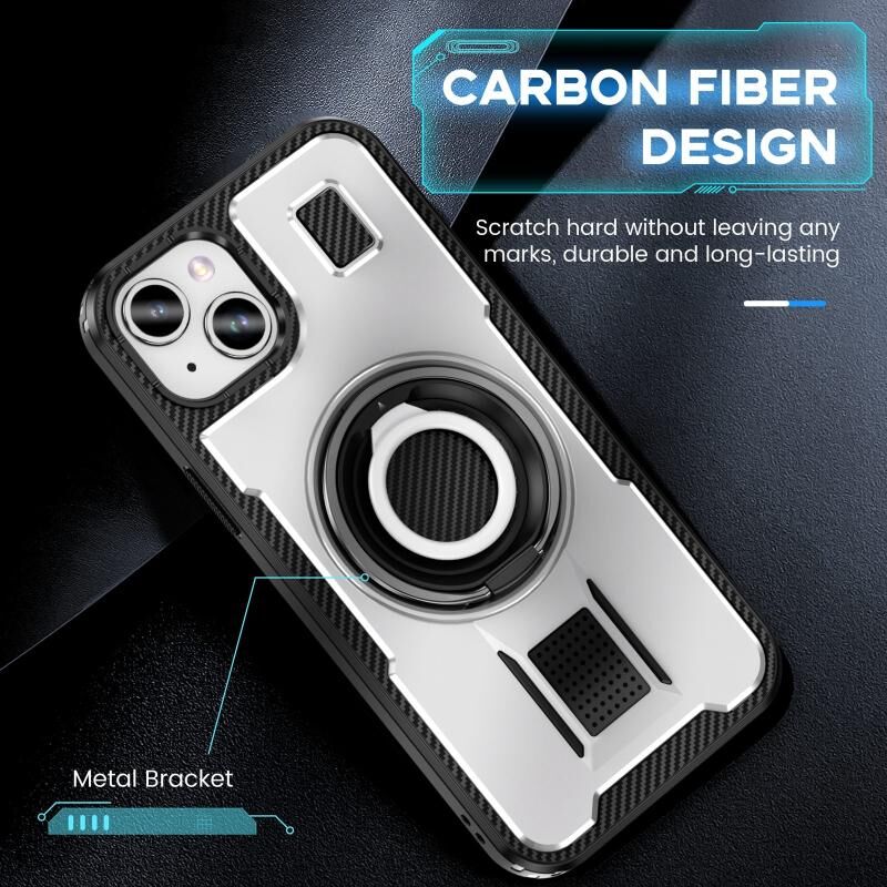 For iPhone 14 / 13 Ring Holder Carbon Fiber PC Hybrid TPU Phone Case(White)