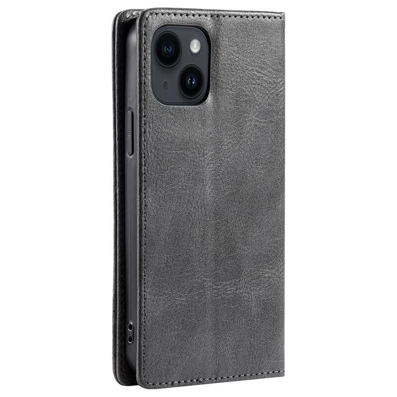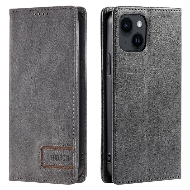 Θήκη τηλεφώνου από δέρμα με μαγνητική υφή retro για iPhone 14 / 13 TTUDRCH RFID (Γκρι)