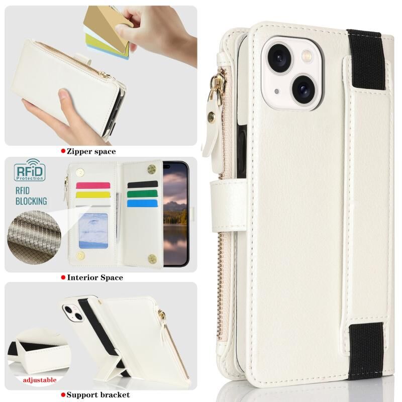 Για iPhone 14 / 13 Βραχιόλι με Φερμουάρ Πορτοφόλι Δερμάτινη Θήκη Τηλεφώνου RFID (Λευκό)
