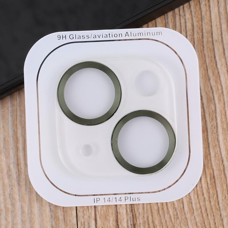 For iPhone 14 / 14 Plus 50pcs Tempered Glass CD Texture Back Camera Film(Dark Green)