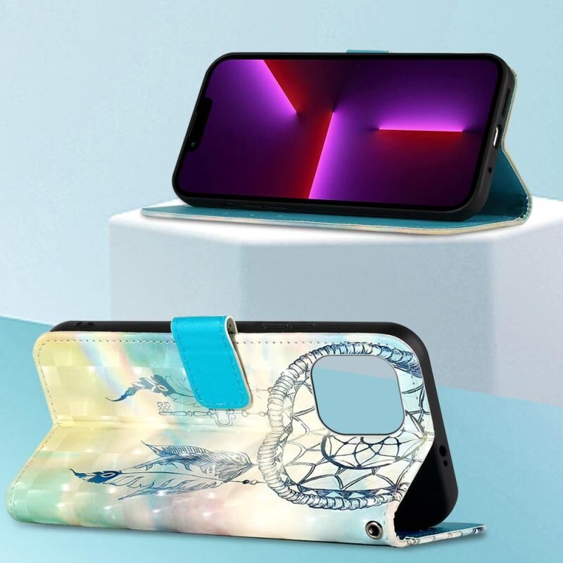 Θήκη τηλεφώνου από δέρμα με οριζόντιο άνοιγμα και τρισδιάστατη ζωγραφική για iPhone 14 (Όνειρο Κουδουνιών Ανέμου)