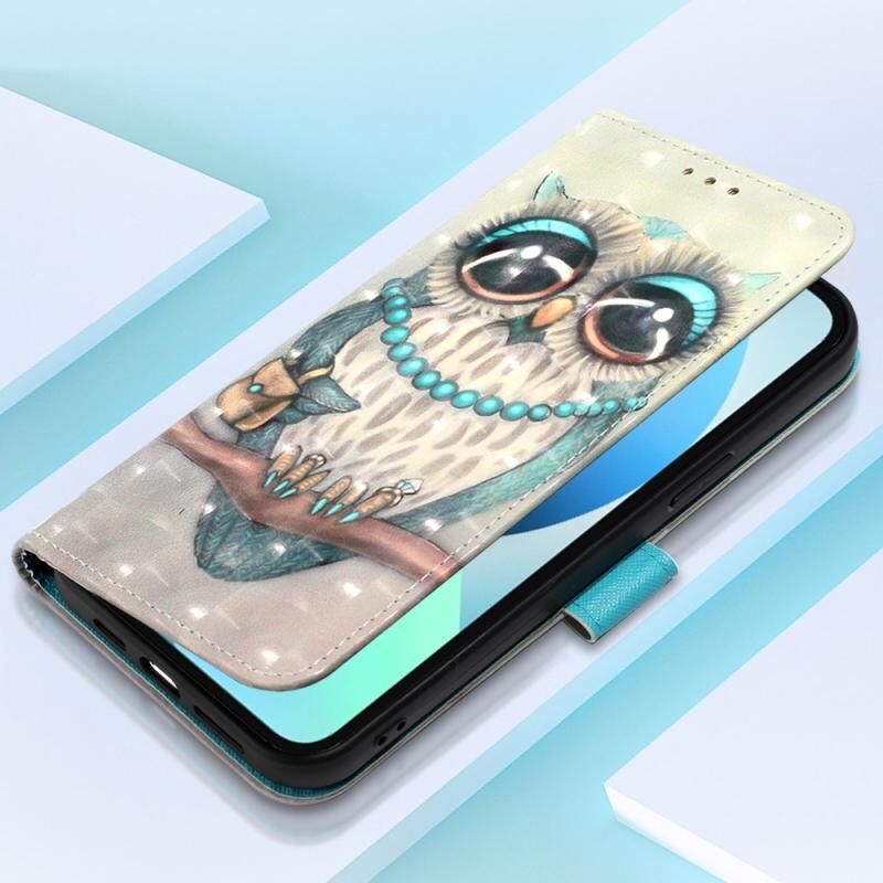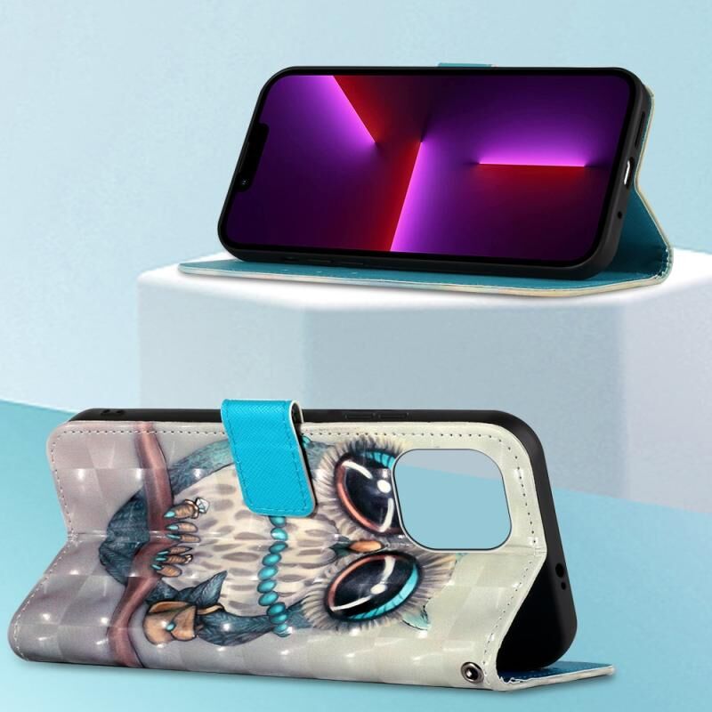 Θήκη τηλεφώνου δερμάτινη με οριζόντιο άνοιγμα και 3D ζωγραφική για iPhone 14 (Γκρι κουκουβάγια)