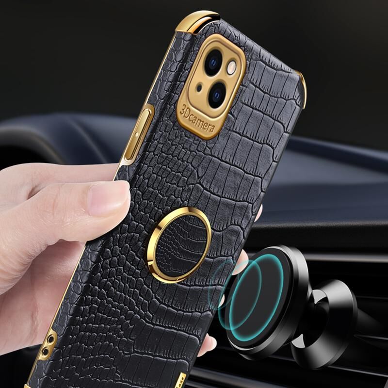 Θήκη τηλεφώνου με υφή κροκόδειλου και ηλεκτρολυτική επίστρωση για iPhone 14 6D με βάση στήριξης (Μαύρο)