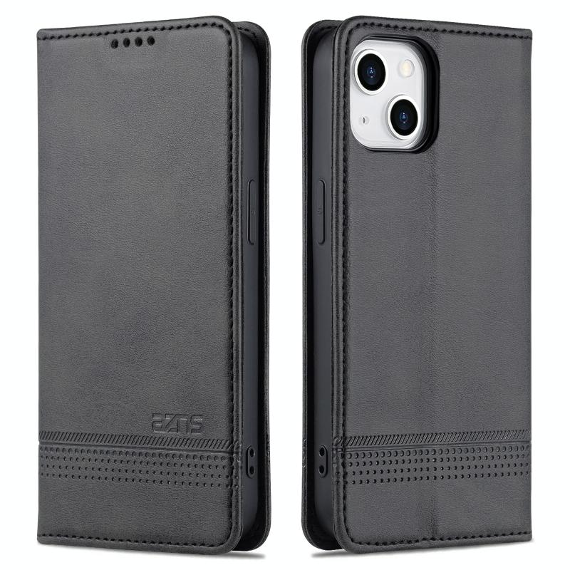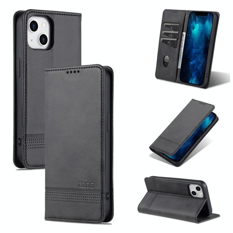 For iPhone 14 AZNS Magnetic Calf Texture Flip Leather Phone Case (Black) (AZNS)
