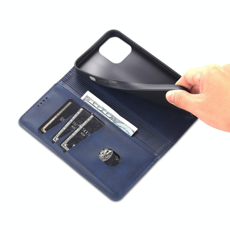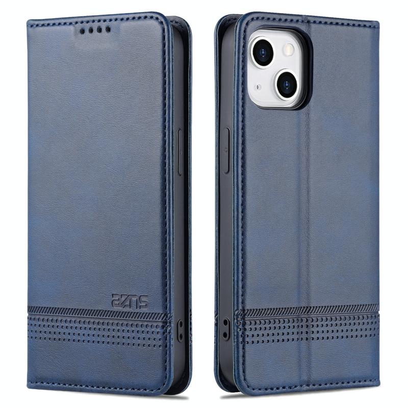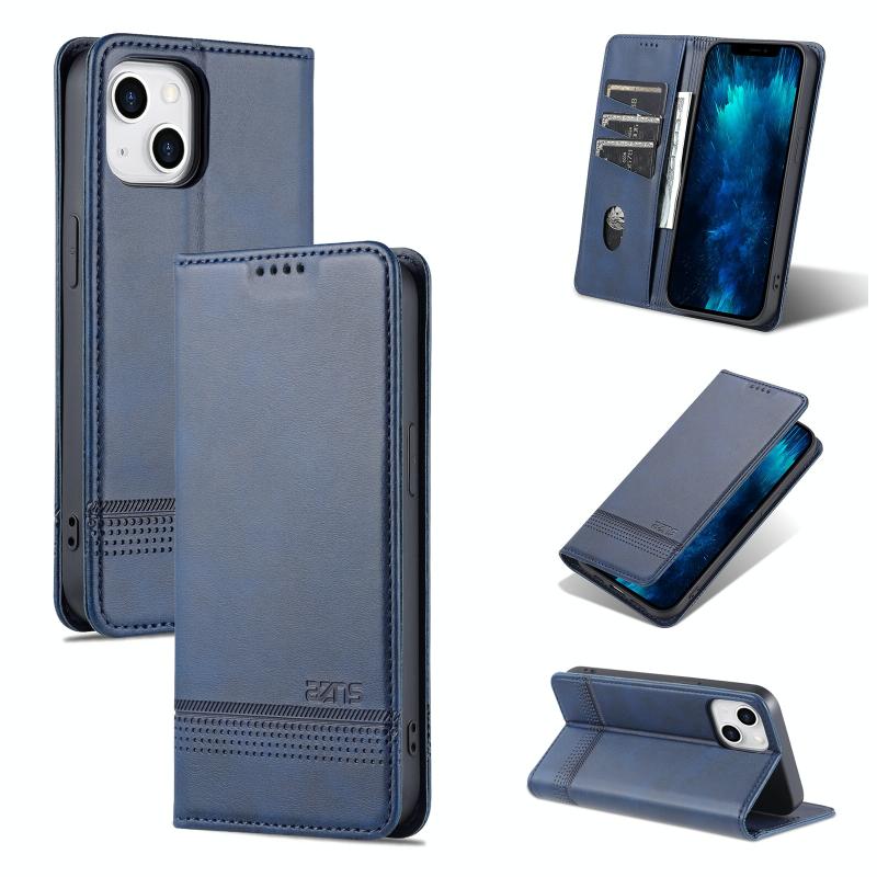 For iPhone 14 AZNS Magnetic Calf Texture Flip Leather Phone Case (Dark Blue) (AZNS)