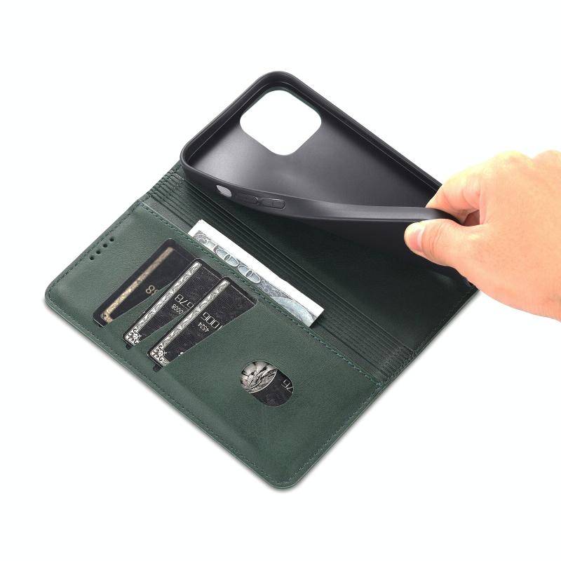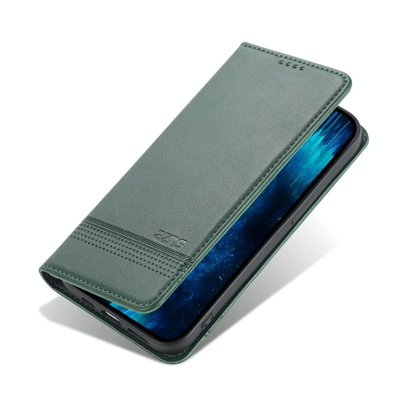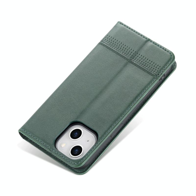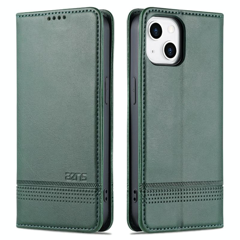 For iPhone 14 AZNS Magnetic Calf Texture Flip Leather Phone Case (Dark Green) (AZNS)