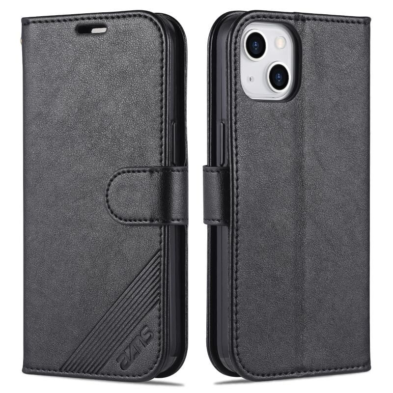 Θήκη δέρματος οριζόντιας αναδίπλωσης με υφή δέρματος προβάτου για iPhone 14 AZNS (Μαύρο) (AZNS)
