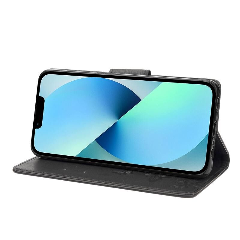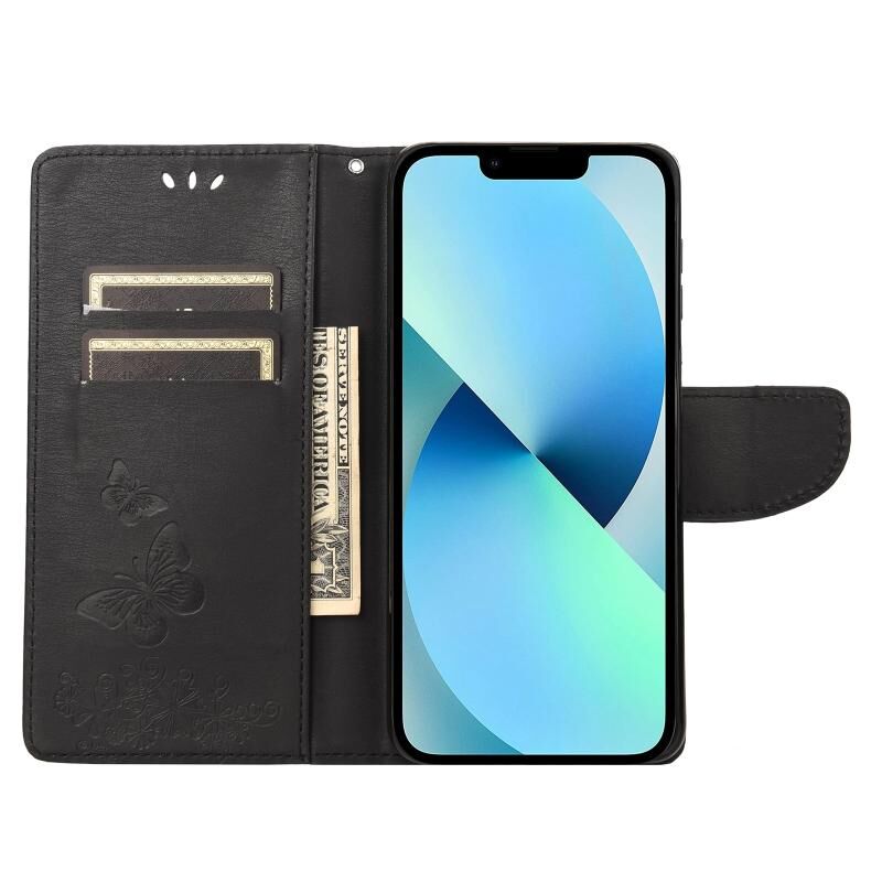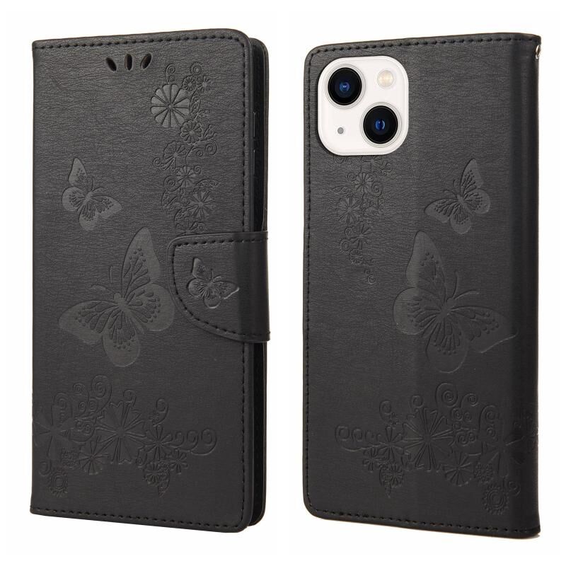 For iPhone 14 Butterfly Embossed Horizontal Flip Leather Phone Case (Black)