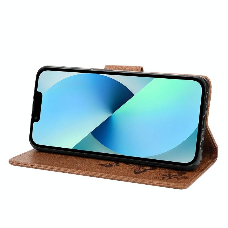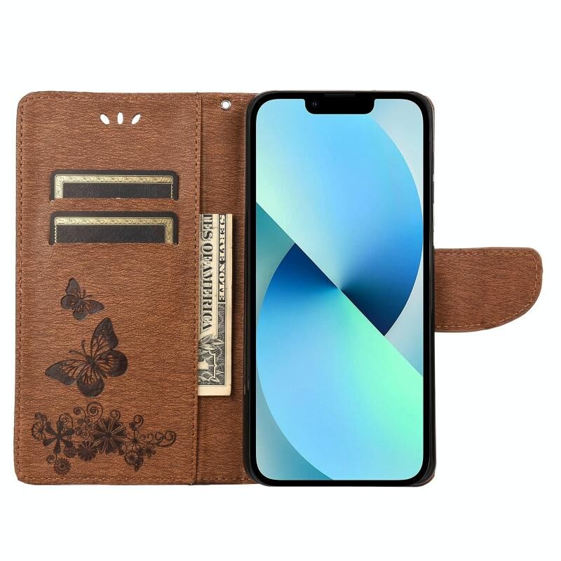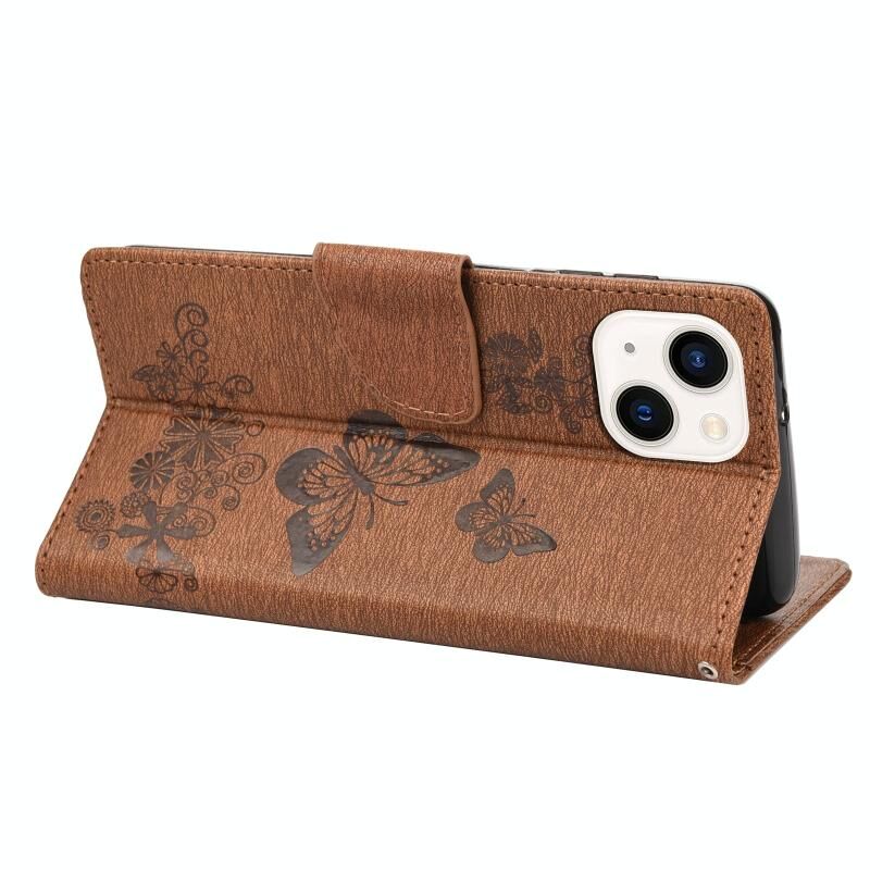 For iPhone 14 Butterfly Embossed Horizontal Flip Leather Phone Case (Brown)