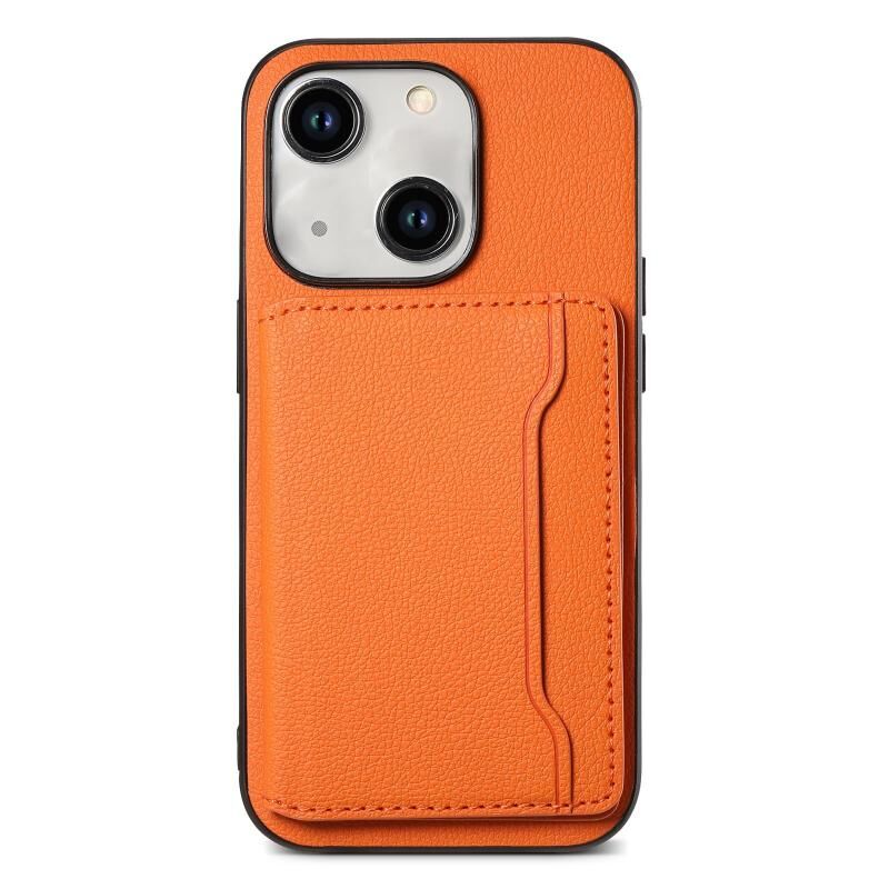 Θήκη τηλεφώνου πλήρους κάλυψης με σχέδιο τσάντας κάρτας υφής μοσχαριού για iPhone 14 (Πορτοκαλί)