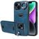 For iPhone 14 Calf Texture Card Slot Ring Holder Phone Case(Blue)