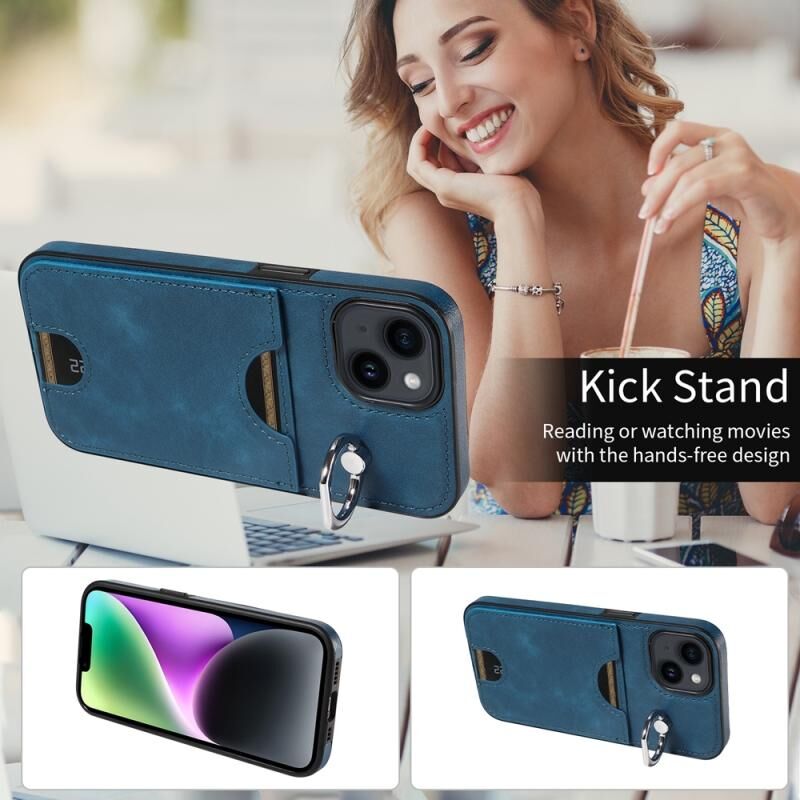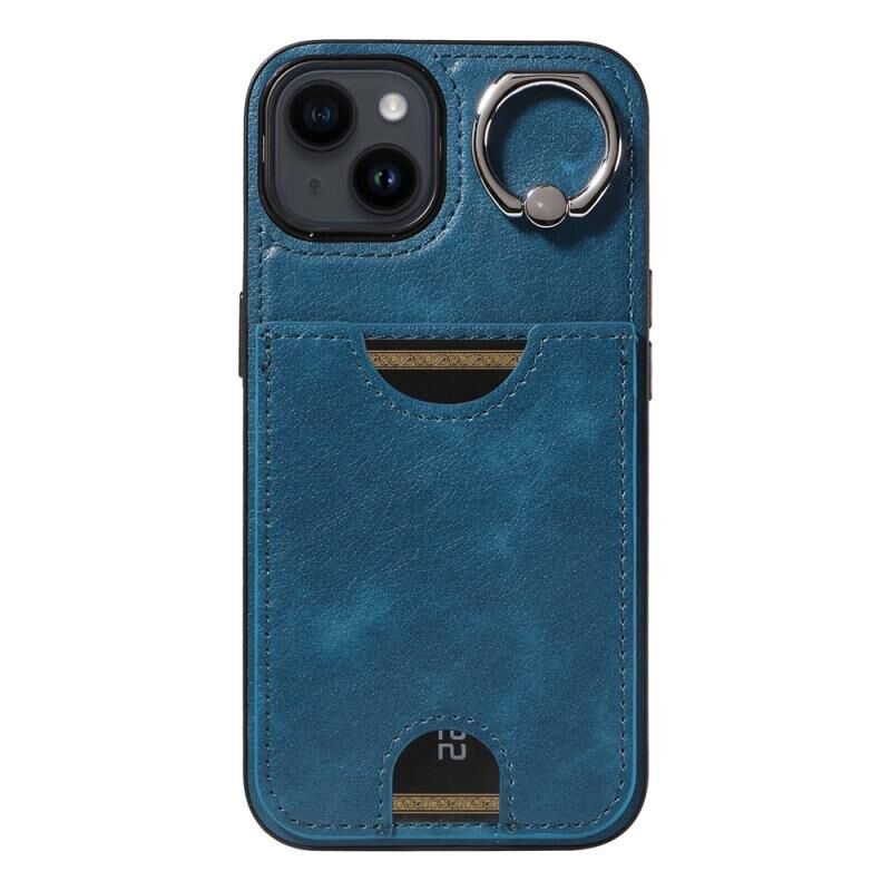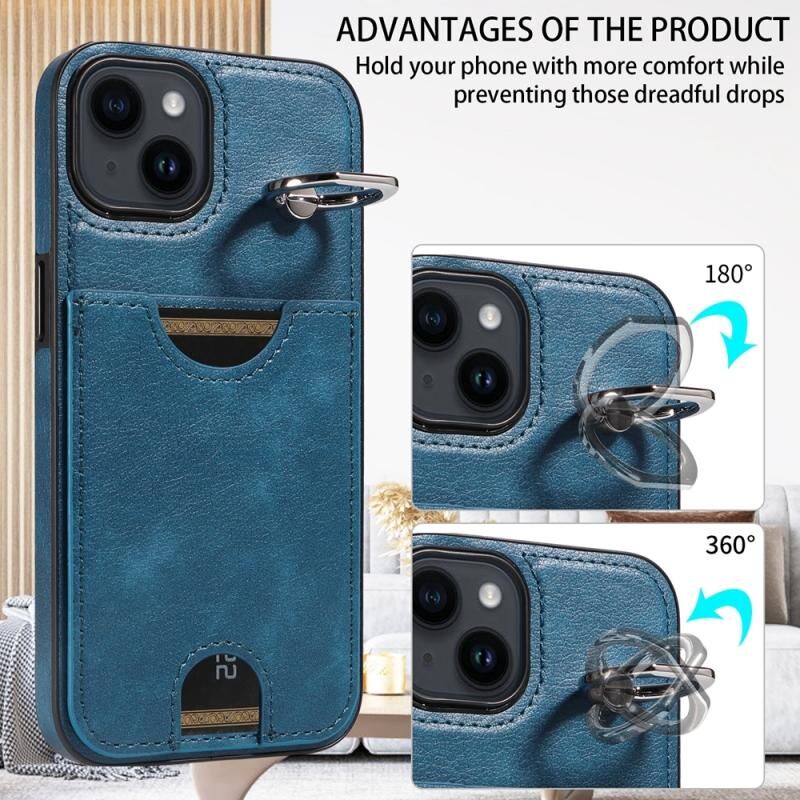 Θήκη τηλεφώνου για iPhone 14 με υφή δέρματος μοσχαριού, θήκη κάρτας και δαχτυλίδι στήριξης (Κόκκινο)