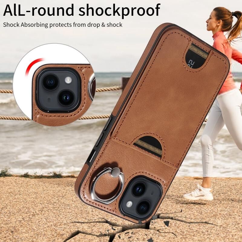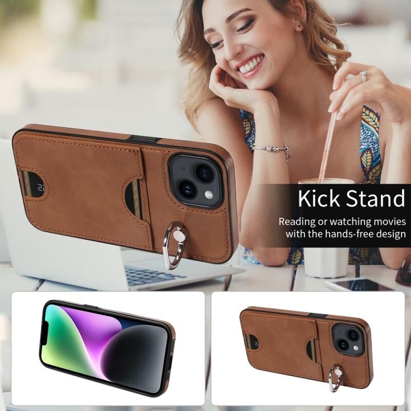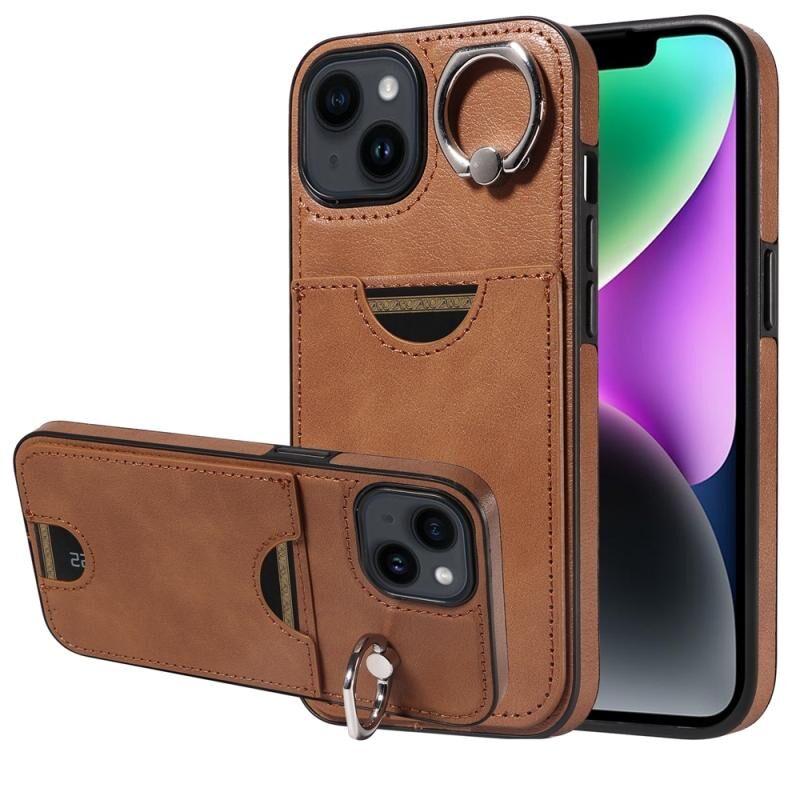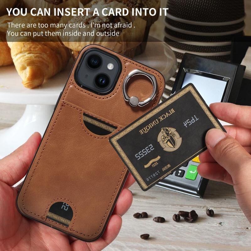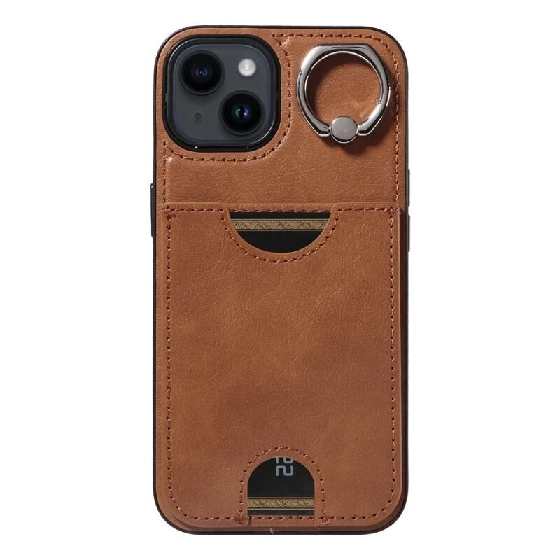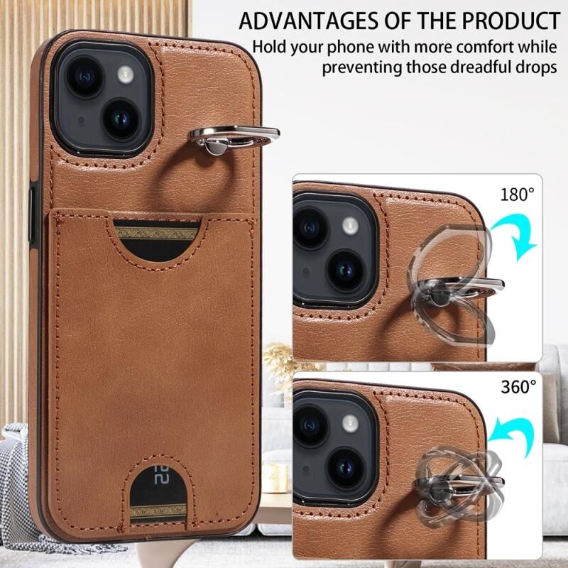 Θήκη τηλεφώνου για iPhone 14 με υφή δέρματος μοσχαριού, θήκη κάρτας και δαχτυλίδι στήριξης (Κόκκινο)