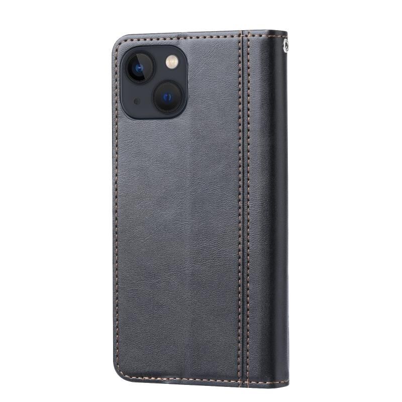 For iPhone 14 Calf Texture Double Fold Clasp Horizontal Flip Leather Case (Black)
