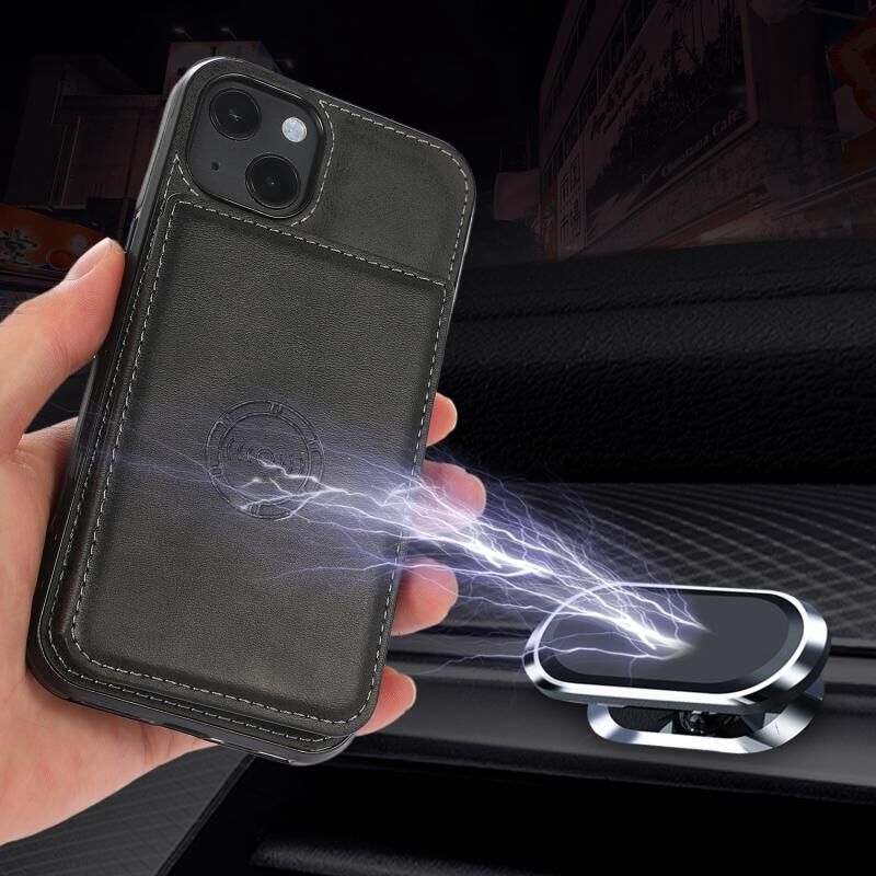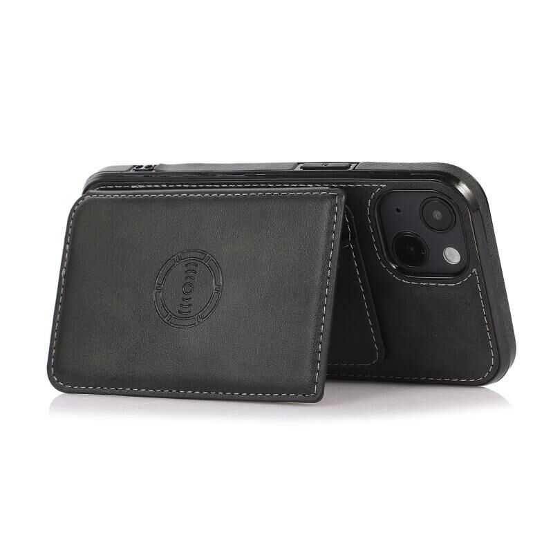 Θήκη για iPhone 14 με μαγνητική θήκη καρτών με υφή δέρματος μοσχαριού (Μαύρο)