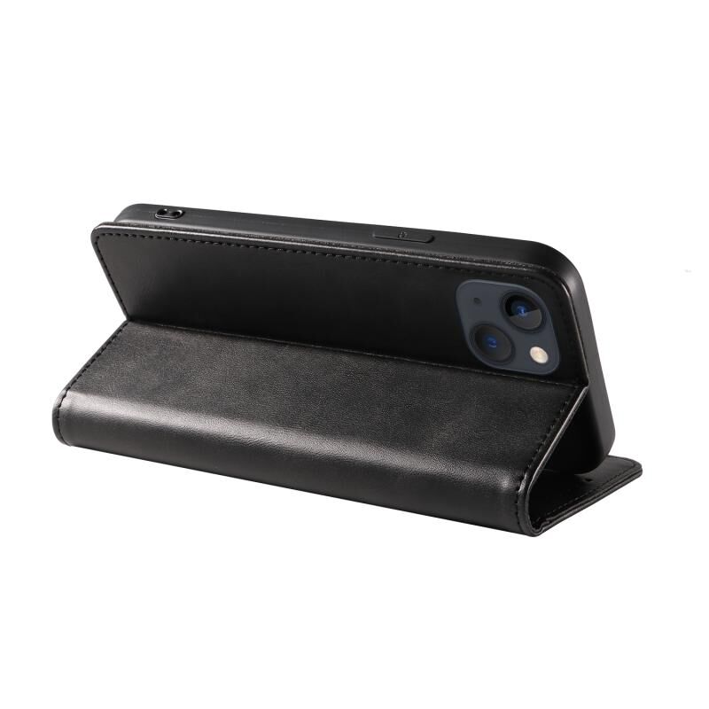 Θήκη για iPhone 14 με μαγνητικό κλείσιμο, δερμάτινη με υφή μοσχαριού (Μαύρο)